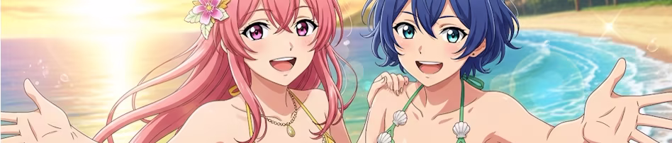 This game contains suggestive anime artwork featuring models in swimwear and beach attire. Intended for players 18 years and older.