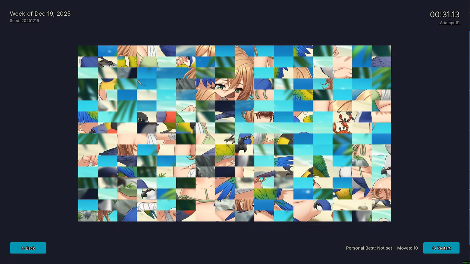 Solve scrambled anime artwork and watch it come to life. Bikini Heaven is a free swap puzzle game where you rearrange any two tiles to reconstruct beautiful pin-up illustrations - then unlock rewards. Relax or race the clock across grids from 3×3 to 16×16.