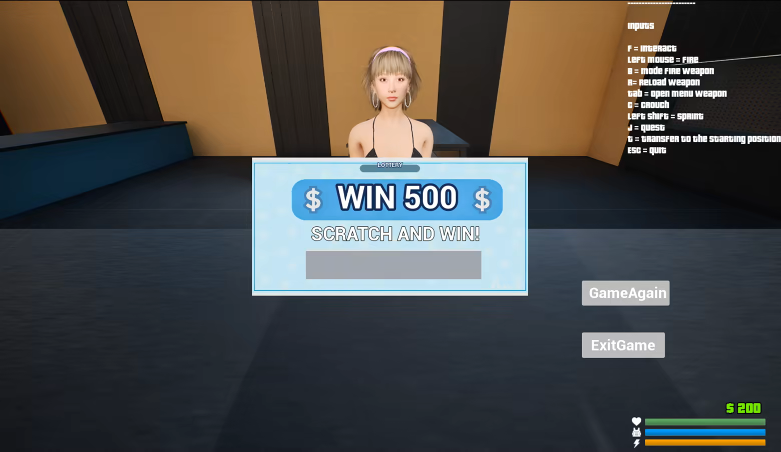"Casino Tycoon: Sin & Win" Demo is an open-world experience where you can gear up, drive around, climb, and swim. In this demo version, only one island town map is available. Try your luck with lottery and slot machines to earn your first fortune — this coastal town is where your fortune begins.