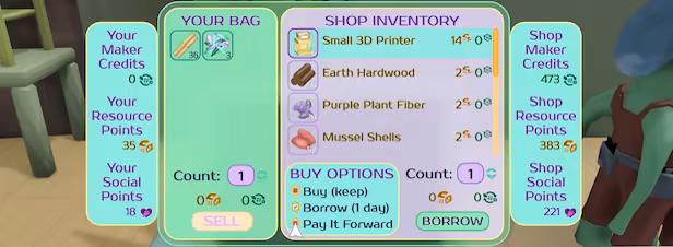 The game's systems encourage a balance of give and take, rather than accumulating as much as possible. Learn how the town's community land trust uses economic policies and technology to support creative efforts, account for shared costs, and maintain a healthy local environment and community.