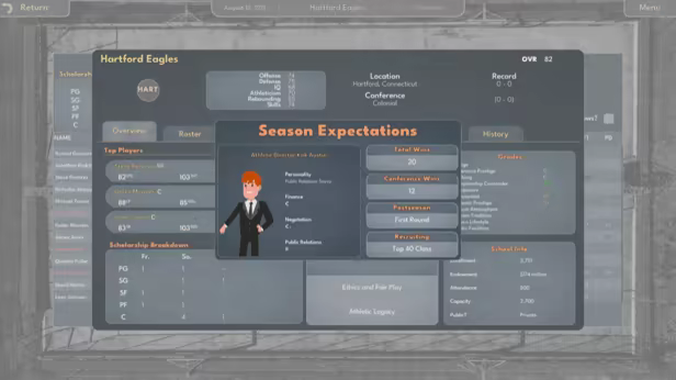 Take charge as head coach in College Basketball Manager. Recruit your dream team, whether that be through All-Americans or hidden gems. Strategize gameplay, schedule games, run practices, and manage your staff, because you are in control. The court is your canvas – create a powerhouse.