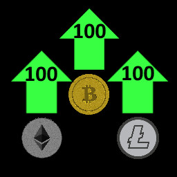 Buy 100 of each BTC, ETH, and LTC upgrades