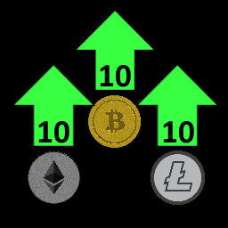 Buy 10 of each BTC, ETH, and LTC upgrades