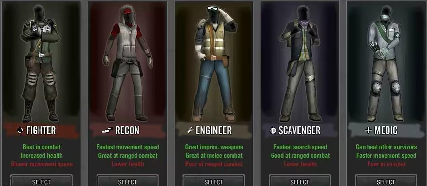What do you need? A doctor to heal you? A fast looter? A powerful fighter? A swift scout? A front-line engineer?