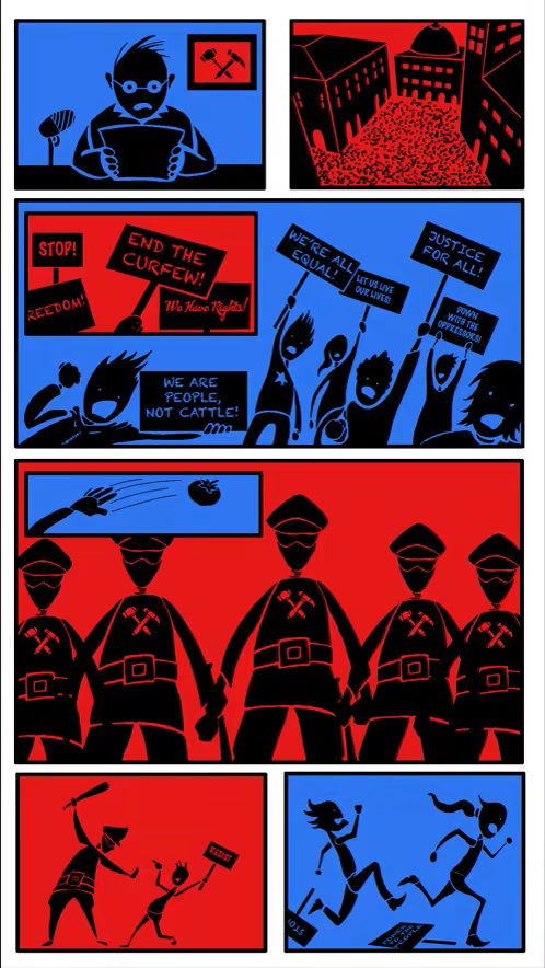 Dystopicon is a game inspired by literary classics like 1984, Brave new World, Ubik, and the video game Papers, please. Tells its story through gameplay, written messages, and comic-style sequences.
