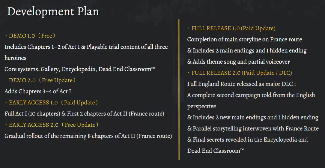The story unfolds over three acts, spanning key historical events of the 15th century. The game blends dual narrative routes, affection mechanics, a collectible encyclopedia, and even a Dead End classroom system, immersing you in the brutal beauty of the turbulent 15th century.