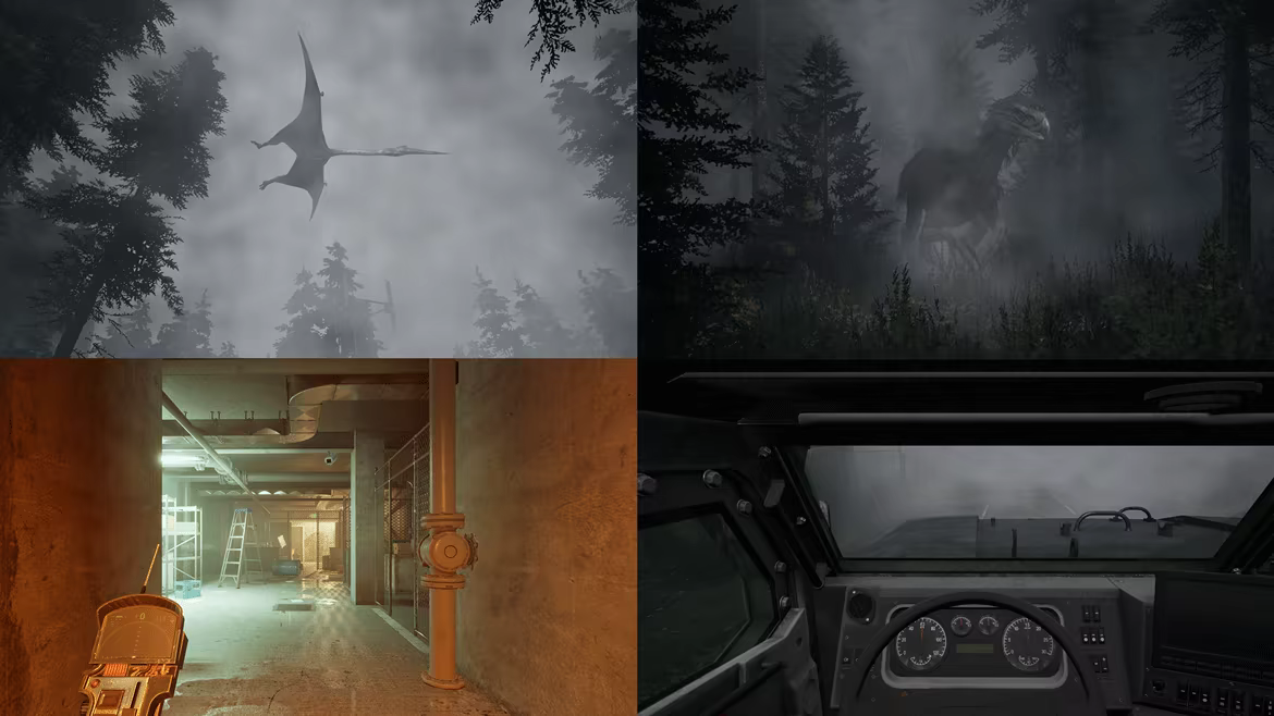 You are stranded on a remote, mysterious island. Once home to a secret genetic research facility, the island has been overrun by resurrected prehistoric creatures after a catastrophic containment failure. Explore the dense jungle paths, abandoned laboratories and structures as you uncover the island’s past and scavenge resources — all while evading the relentless creatures hunting you.