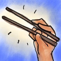 Taught Ade to use chopsticks. Did your hands brush...?