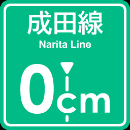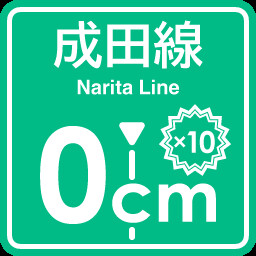 Stopping at 0cm for the first time on the Narita Line