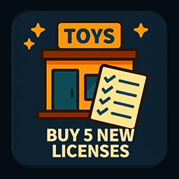 Buy 5 new licenses in the Toy Store.