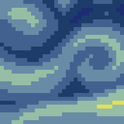 Complete the 1st region of Starry Night painting.