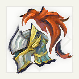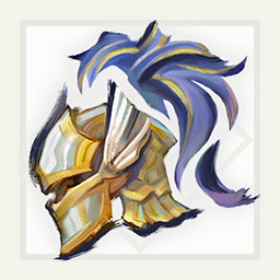 A helm with golden hollows and blue wings. Awarded for forging even more valuable layered armor.