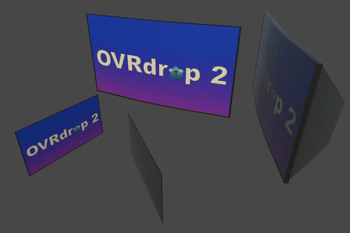 OVRdrop 2 aims to be highly configurable with nearly infinite possible configurations. Some user configuration may be required for all experiences. VR Tracked Controllers are required for most interactions. OVRdrop 2 requires Windows 10 or newer. Not all applications can currently be captured. Some applications may refuse capture due to DRM/DMCA restrictions. Some applications may refuse capture due to technical limitations. Please report any incompatibilities on our Discord and we'll get right on it! OVRdrop 2 runs on SteamVR and can only render to your headset when SteamVR is rendering. If you cannot see the SteamVR Dashboard menu in VR, you will not be able to see OVRdrop 2. The Dashboard does not need to remain open while using OVRdrop 2, but if you can't ever open the Dashboard, SteamVR is not rendering to the headset. Some games will prefer to use native rendering pipelines which prevent OVRdrop 2 from rendering, particularly when using certain HMDs.