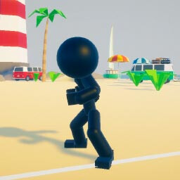 You are a stickman volleyball player! Time for some running and smashing of the ball on a beautiful 3d beach to relax.