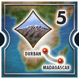 In Africa, use terrain cards to claim Durban-Madagascar in 5 different games