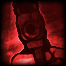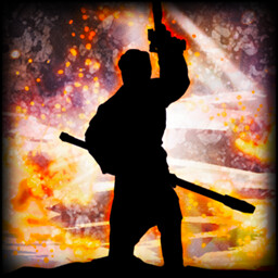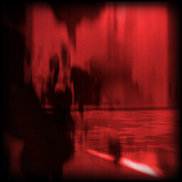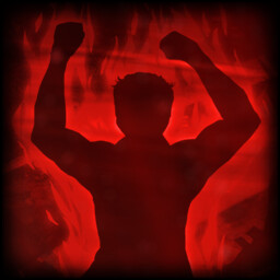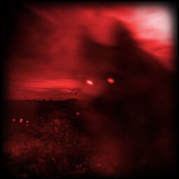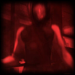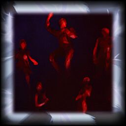 Battered by "monsters" next to the dark-red humanoid figure