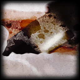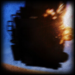 Blasted into charred fragments by white projectiles