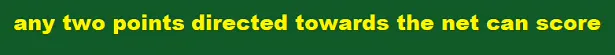 Direct any two points from your team towards the opponent's net and score. First party to score wins.